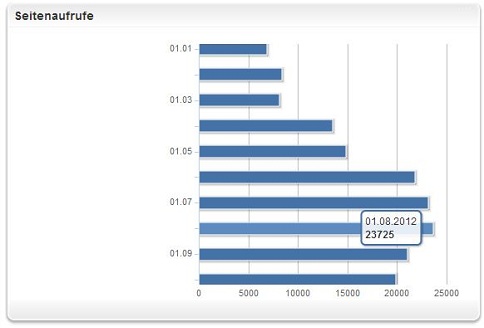 Schaut man sich die Entwicklung der Seitenaufrufe an, fällt auf, dass seit dem Juni noch mal ein Sprung zu verzeichnen ist. Über 20.000 Aufrufe im Monat sind es seither. Der Spitzenwert liegt im August mit 23.725 Aufrufen. Auch der "Stefan-Raab-Monat" September konnte dieses Ergebnis nicht mehr übertreffen.