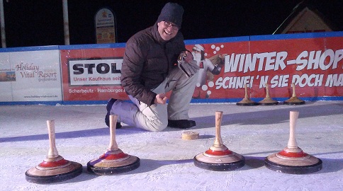 Location war perfekt für den Abend im Eisstockschießen. Beleuchtung, Beschallung, winterliche Temperaturen, Aufwärmzelt, Getränke - und auch zeitlich passte alles, wenngleich nach fast vier Stunden eigentlich jeder einverstanden war, die Eisbahn wieder zu verlassen.