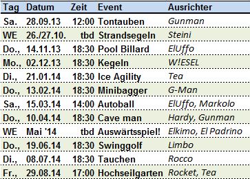 Lübeck's fünfte Saison steht. Mit Autoball, Caveman, Strandsegeln u.v.m. sind wieder einige Leckerbissen dabei. Es geht los im September mit lecker Tontauben und für nächstes Jahr ist sogar ein "Auswärtsspiel!" geplant. Bobby Car Downhill schafft es wieder nur als Ersatzdisziplin auf die Eventliste.