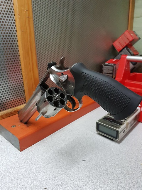 Und es fanden sich nur 9 von 10 möglichen Durchschüssen auf der 50cm x 50cm Scheibe. „Nur“ 5 Schuss mit der 44er Magnum. Kein Probeschuss. Die Spannung stieg. Ist doch der Rückschlag schon aus Film und Fernsehen berüchtigt.