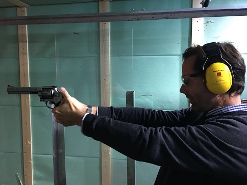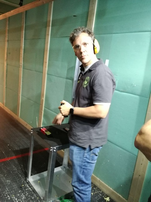 In 2 Gruppen aufgeteilt wurden wir durch das geschulte Personal in den sicheren Umgang mit Schusswaffen eingewiesen. Spätestens beim Laden der Waffen stieg dann der Adrenalinspiegel der meisten Schützen an. Mit Brille und Gehörschutz wurde dann aus 10 Meter Distanz auf die Scheiben geschossen. Nach der Anspannung kam in den meisten Gesichtern das breite Grinsen an.