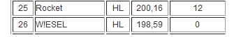 Rang 20 ist derzeit belegt vom Bremer Jörch mit 204,21 Punkten. Bei einer Teilnahme am Lübecker Märzevent werden sowohl Rocket als auch W!ESEL diese Hürde in jedem Fall überspringen und erstmalig in die Top 20 vordringen. Richtig gut sieht es für Rocket aus. Wenn es ihm gelingt seinen bisher gezeigten Punkteschnitt in dieser Saison in den nächsten drei Wettkämpfen konstant zu halten, hätte er 247,2 Punkte - damit stünde er im Moment vor dem Kölner Jockel auf Rang 5 und nicht mal einen halben Punkt hinter dem Bremer Djänson.
