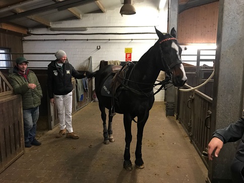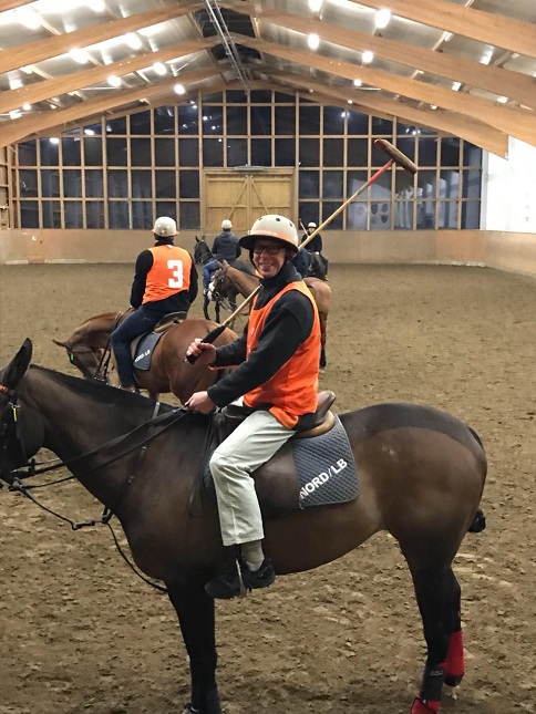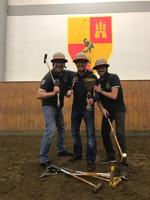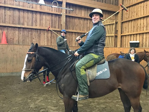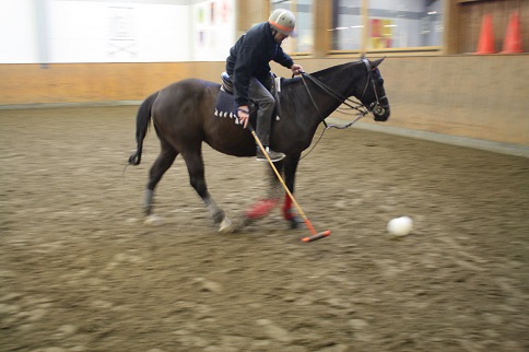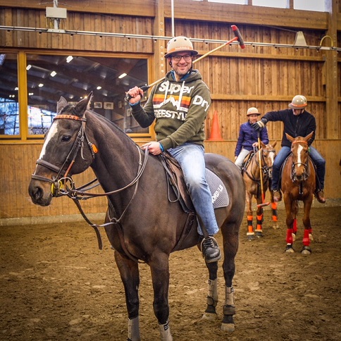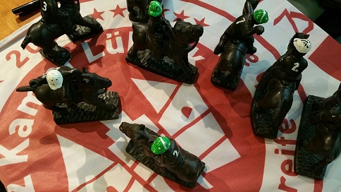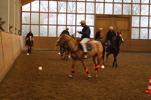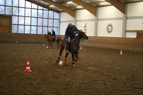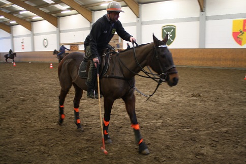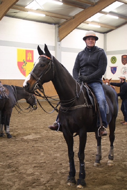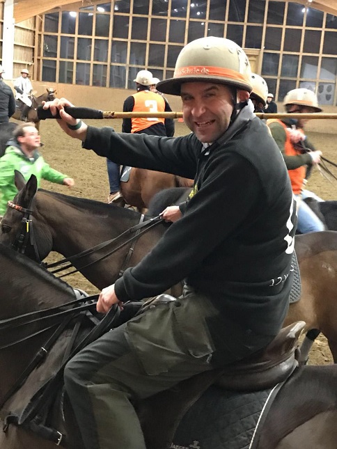 Zuerst wurde der Umgang mit dem Poloschläger geübt. Schon hier musste man feststellen, dass keiner der 11 12-Kämpfter talentbefreit mit dem Schläger umging. Jetzt wurde es ernst. Jedem Wettkämpfer wurde sein Polopferd vorgestellt. Innerhalb einer kurzen Zeit schaffte es dann Thomas Winter mit seinem Team, allen 12 Kämpfern den Umgang mit dem Pferd zu erläutern. Einfach!, eigentlich wie ein Joystick! Den kannten alle noch vom Amiga und C64, auch Elkimo, der bekanntlich kein 50 mehr ist.