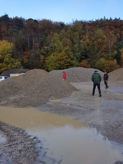 Es musste also improvisiert und auf dem riesen Areal kurzfristig eine neue Strecke zwischen den Sand- und Steinbergen gefunden werden. Was schließlich gelang, aber ebenso seine Zeit in Anspruch nahm wie das Auffüllen eines großen Schlagloches mit Hilfe Volkers riesigem Radladers und das zweimalige Abgehen der Strecke, da sich der ein (G-Man) oder andere (Laxer) und besonders Steini trotz vorherigen Abgehens im Trainingslauf dennoch verfuhr.