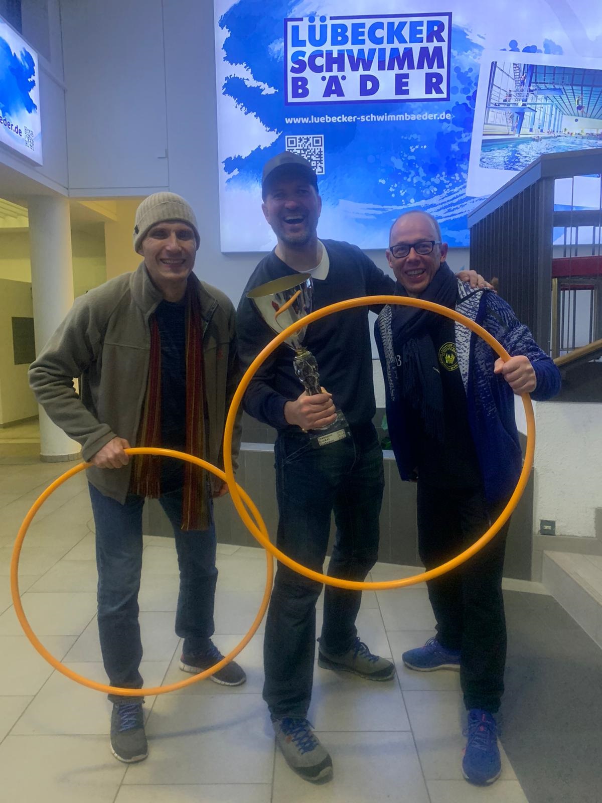 Insgesamt hat das Event sehr gut geklappt. Der Dank geht an die Lübecker Schwimmbäder, dass sie den Spaß so mitgemacht haben und vor allem auch an Rocket, der durch die Art und Qualität der Kostüme maßgeblich zu einem reibungslosen Ablauf beigetragen hat. Erneut gab es ein Lessons Learned: erneut zeigte es sich, dass Wettkämpfe im Wasser besser ohne Ehering ausgetragen werden…